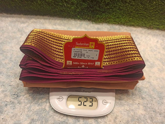 The Mysore silk crepe is woven from hardspun silk yarn and is one of the most widely used form of silk across India. The Mysore silk comes from the city of Mysore in Karnataka, India The earliest mentions of the silken crepe fabric can be traced back to 1785 AD. This was the time when the first silk cocoons where imported to Mysore. It was Tipu Sultan, a great Indian warrior, who in the pursuit of making Mysore a great land, first imported cocoons of silk from China. During Tipu Sultan’s regime, sericulture was formally introduced to Mysore. Thereafter, sericulture became one of the most important industries of Karnataka. Since Mysore silk crepe belongs to an era of ancient India, it traditionally is made of pure silk with gold Zari. Inspired by the natural ambiance and customs of the time, the Mysore silk crepe saree got a face that preserves the heritage of India. Buy exclusive Mysore crape silk sarees at Sudarshan Silk which has proven to be a shopper's delight in wedding sarees, silk sarees for all generations of families. MYSORE SILK ALSO KNOWN AS CRAPE SILK SAREES, WORLDWIDE SHIPPING IN WHOLE SALE PRICES. , India United States United Kingdom Finland Sri Lanka Malaysia Canada Australia Bangladesh France Singapore Switzerland Fiji Bahrain and all