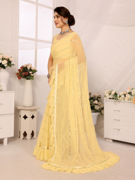 Designer saris are made of the most luxurious materials, both traditional and modern. These are often painstakingly hand-woven with intricate designs and embellishments.
