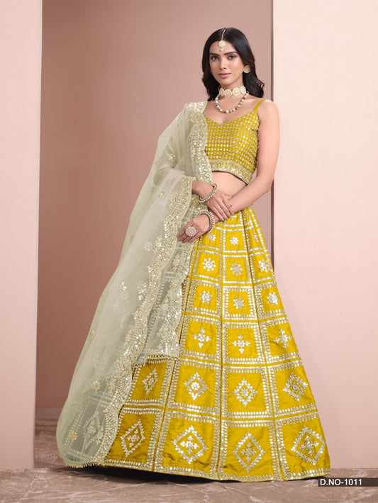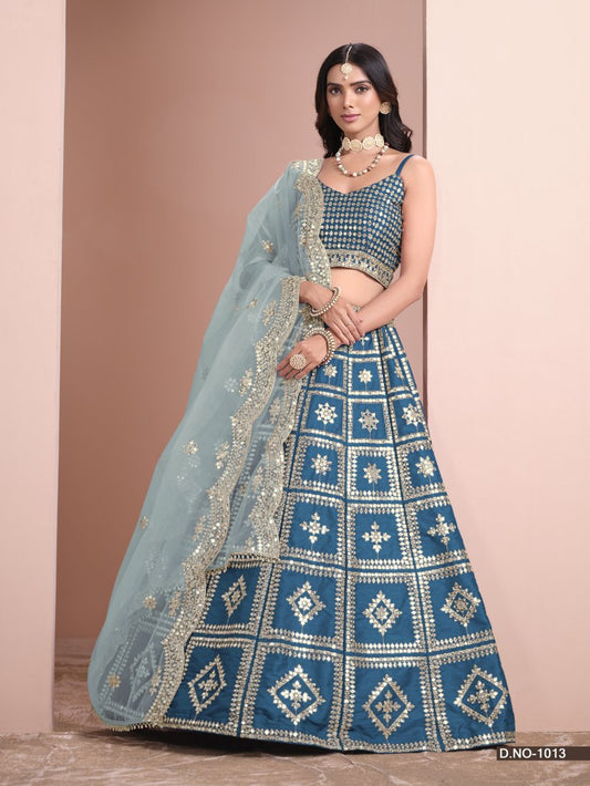 Buy latest lehenga sarees, wedding lehenga choli ,and bridal lehenga cholis with varieties of designs and collection at the online store of Sudarshan Silk. Indian fashion is full of many gorgeous types of textiles, techniques and designs. There are many different types of garments worn across the country in different regions Many of which have broken out of their traditional demographics and become popular with modern women as well as people from other countries. Among these is the glorious Ghagra choli. One of the most ancient garments from India, the Ghagra choli is renowned for its elegance, beauty and traditional look. A Ghagra choli essentially consists of three pieces. The upper wear garment is called the ‘choli’. It is a well-fitted blouse that varies in length depending on the look of the over-all garment. The Ghagra is the long skirt that usually reaches all the way till the floor. It can be of different types of fits, from a straight cut, circular cut or a-line cut to a mermaid cut. The outfit is completed with a flowing scarf called the dupatta.