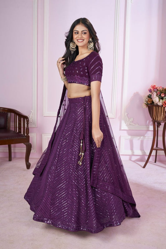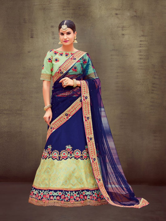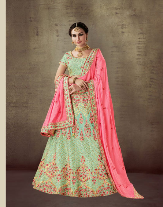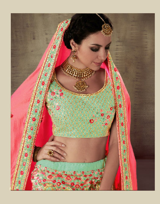 Buy latest lehenga sarees, wedding lehenga choli ,and bridal lehenga cholis with varieties of designs and collection at the online store of Sudarshan Silk. Indian fashion is full of many gorgeous types of textiles, techniques and designs. There are many different types of garments worn across the country in different regions Many of which have broken out of their traditional demographics and become popular with modern women as well as people from other countries. Among these is the glorious Ghagra choli. One of the most ancient garments from India, the Ghagra choli is renowned for its elegance, beauty and traditional look. A Ghagra choli essentially consists of three pieces. The upper wear garment is called the ‘choli’. It is a well-fitted blouse that varies in length depending on the look of the over-all garment. The Ghagra is the long skirt that usually reaches all the way till the floor. It can be of different types of fits, from a straight cut, circular cut or a-line cut to a mermaid cut. The outfit is completed with a flowing scarf called the dupatta.