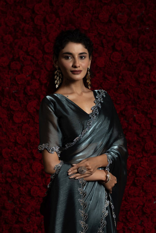 Designer saris are made of the most luxurious materials, both traditional and modern. These are often painstakingly hand-woven with intricate designs and embellishments.