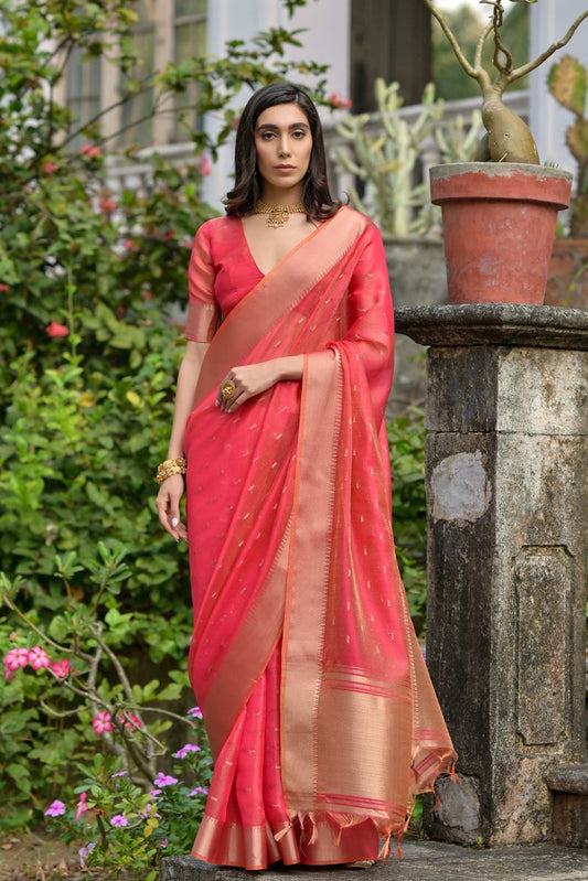 Designer saris are made of the most luxurious materials, both traditional and modern. These are often painstakingly hand-woven with intricate designs and embellishments.