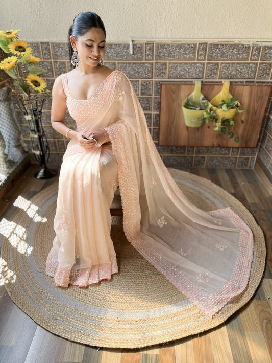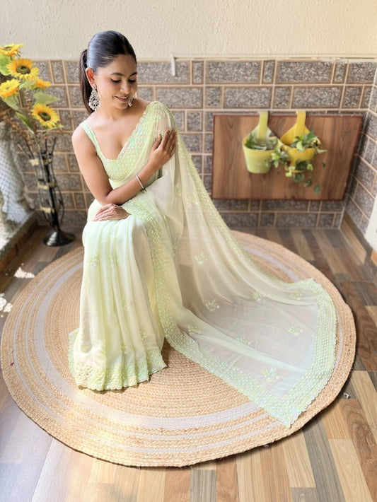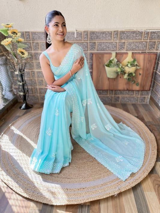Designer saris are made of the most luxurious materials, both traditional and modern. These are often painstakingly hand-woven with intricate designs and embellishments.