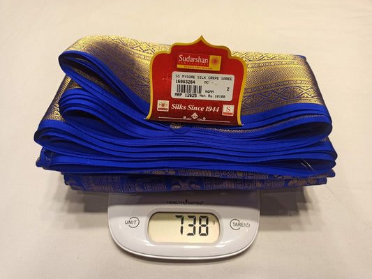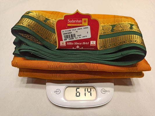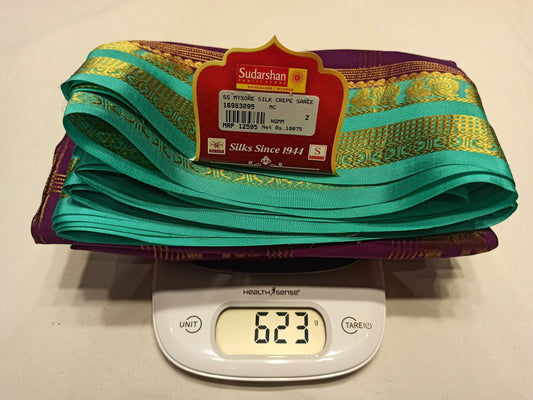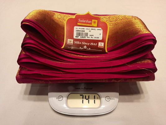 The Mysore silk crepe is woven from hardspun silk yarn and is one of the most widely used form of silk across India. The Mysore silk comes from the city of Mysore in Karnataka, India The earliest mentions of the silken crepe fabric can be traced back to 1785 AD. This was the time when the first silk cocoons where imported to Mysore. It was Tipu Sultan, a great Indian warrior, who in the pursuit of making Mysore a great land, first imported cocoons of silk from China. During Tipu Sultan’s regime, sericulture was formally introduced to Mysore. Thereafter, sericulture became one of the most important industries of Karnataka. Since Mysore silk crepe belongs to an era of ancient India, it traditionally is made of pure silk with gold Zari. Inspired by the natural ambiance and customs of the time, the Mysore silk crepe saree got a face that preserves the heritage of India. Buy exclusive Mysore crape silk sarees at Sudarshan Silk which has proven to be a shopper's delight in wedding sarees, silk sarees for all generations of families. MYSORE SILK ALSO KNOWN AS CRAPE SILK SAREES, WORLDWIDE SHIPPING IN WHOLE SALE PRICES. , India United States United Kingdom Finland Sri Lanka Malaysia Canada Australia Bangladesh France Singapore Switzerland Fiji Bahrain and all