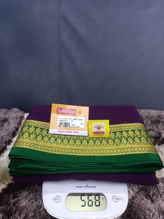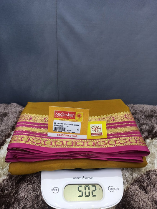 The Mysore silk crepe is woven from hardspun silk yarn and is one of the most widely used form of silk across India. The Mysore silk comes from the city of Mysore in Karnataka, India The earliest mentions of the silken crepe fabric can be traced back to 1785 AD. This was the time when the first silk cocoons where imported to Mysore. It was Tipu Sultan, a great Indian warrior, who in the pursuit of making Mysore a great land, first imported cocoons of silk from China. During Tipu Sultan’s regime, sericulture was formally introduced to Mysore. Thereafter, sericulture became one of the most important industries of Karnataka. Since Mysore silk crepe belongs to an era of ancient India, it traditionally is made of pure silk with gold Zari. Inspired by the natural ambiance and customs of the time, the Mysore silk crepe saree got a face that preserves the heritage of India. Buy exclusive Mysore crape silk sarees at Sudarshan Silk which has proven to be a shopper's delight in wedding sarees, silk sarees for all generations of families. MYSORE SILK ALSO KNOWN AS CRAPE SILK SAREES, WORLDWIDE SHIPPING IN WHOLE SALE PRICES. , India United States United Kingdom Finland Sri Lanka Malaysia Canada Australia Bangladesh France Singapore Switzerland Fiji Bahrain and all