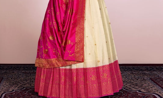 Buy latest lehenga sarees, wedding lehenga choli ,and bridal lehenga cholis with varieties of designs and collection at the online store of Sudarshan Silk. Indian fashion is full of many gorgeous types of textiles, techniques and designs. There are many different types of garments worn across the country in different regions Many of which have broken out of their traditional demographics and become popular with modern women as well as people from other countries. Among these is the glorious Ghagra choli. One of the most ancient garments from India, the Ghagra choli is renowned for its elegance, beauty and traditional look. A Ghagra choli essentially consists of three pieces. The upper wear garment is called the ‘choli’. It is a well-fitted blouse that varies in length depending on the look of the over-all garment. The Ghagra is the long skirt that usually reaches all the way till the floor. It can be of different types of fits, from a straight cut, circular cut or a-line cut to a mermaid cut. The outfit is completed with a flowing scarf called the dupatta.