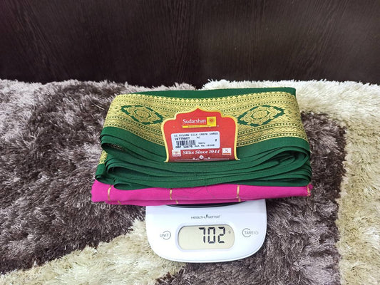 The Mysore silk crepe is woven from hardspun silk yarn and is one of the most widely used form of silk across India. The Mysore silk comes from the city of Mysore in Karnataka, India The earliest mentions of the silken crepe fabric can be traced back to 1785 AD. This was the time when the first silk cocoons where imported to Mysore. It was Tipu Sultan, a great Indian warrior, who in the pursuit of making Mysore a great land, first imported cocoons of silk from China. During Tipu Sultan’s regime, sericulture was formally introduced to Mysore. Thereafter, sericulture became one of the most important industries of Karnataka. Since Mysore silk crepe belongs to an era of ancient India, it traditionally is made of pure silk with gold Zari. Inspired by the natural ambiance and customs of the time, the Mysore silk crepe saree got a face that preserves the heritage of India. Buy exclusive Mysore crape silk sarees at Sudarshan Silk which has proven to be a shopper's delight in wedding sarees, silk sarees for all generations of families. MYSORE SILK ALSO KNOWN AS CRAPE SILK SAREES, WORLDWIDE SHIPPING IN WHOLE SALE PRICES. , India United States United Kingdom Finland Sri Lanka Malaysia Canada Australia Bangladesh France Singapore Switzerland Fiji Bahrain and all