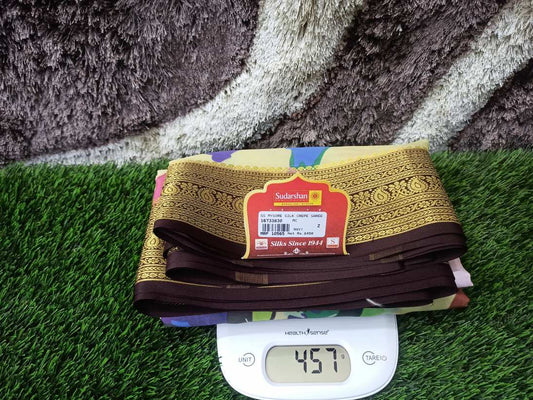 The Mysore silk crepe is woven from hardspun silk yarn and is one of the most widely used form of silk across India. The Mysore silk comes from the city of Mysore in Karnataka, India The earliest mentions of the silken crepe fabric can be traced back to 1785 AD. This was the time when the first silk cocoons where imported to Mysore. It was Tipu Sultan, a great Indian warrior, who in the pursuit of making Mysore a great land, first imported cocoons of silk from China. During Tipu Sultan’s regime, sericulture was formally introduced to Mysore. Thereafter, sericulture became one of the most important industries of Karnataka. Since Mysore silk crepe belongs to an era of ancient India, it traditionally is made of pure silk with gold Zari. Inspired by the natural ambiance and customs of the time, the Mysore silk crepe saree got a face that preserves the heritage of India. Buy exclusive Mysore crape silk sarees at Sudarshan Silk which has proven to be a shopper's delight in wedding sarees, silk sarees for all generations of families. MYSORE SILK ALSO KNOWN AS CRAPE SILK SAREES, WORLDWIDE SHIPPING IN WHOLE SALE PRICES. , India United States United Kingdom Finland Sri Lanka Malaysia Canada Australia Bangladesh France Singapore Switzerland Fiji Bahrain and all