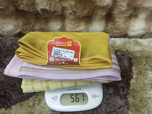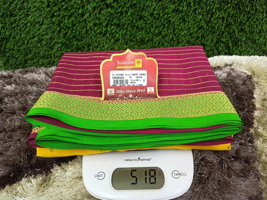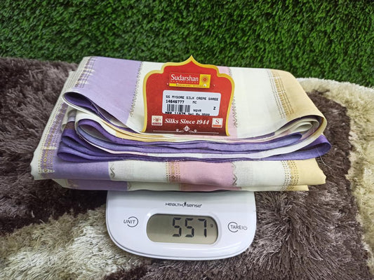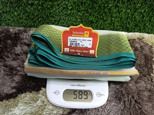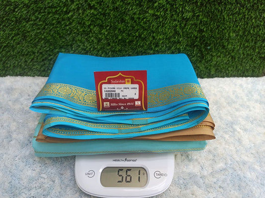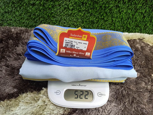 The Mysore silk crepe is woven from hardspun silk yarn and is one of the most widely used form of silk across India. The Mysore silk comes from the city of Mysore in Karnataka, India The earliest mentions of the silken crepe fabric can be traced back to 1785 AD. This was the time when the first silk cocoons where imported to Mysore. It was Tipu Sultan, a great Indian warrior, who in the pursuit of making Mysore a great land, first imported cocoons of silk from China. During Tipu Sultan’s regime, sericulture was formally introduced to Mysore. Thereafter, sericulture became one of the most important industries of Karnataka. Since Mysore silk crepe belongs to an era of ancient India, it traditionally is made of pure silk with gold Zari. Inspired by the natural ambiance and customs of the time, the Mysore silk crepe saree got a face that preserves the heritage of India. Buy exclusive Mysore crape silk sarees at Sudarshan Silk which has proven to be a shopper's delight in wedding sarees, silk sarees for all generations of families. MYSORE SILK ALSO KNOWN AS CRAPE SILK SAREES, WORLDWIDE SHIPPING IN WHOLE SALE PRICES. , India United States United Kingdom Finland Sri Lanka Malaysia Canada Australia Bangladesh France Singapore Switzerland Fiji Bahrain and all
