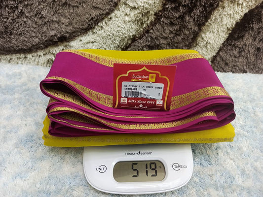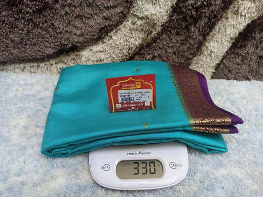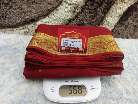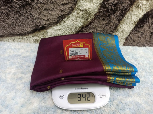 The Mysore silk crepe is woven from hardspun silk yarn and is one of the most widely used form of silk across India. The Mysore silk comes from the city of Mysore in Karnataka, India The earliest mentions of the silken crepe fabric can be traced back to 1785 AD. This was the time when the first silk cocoons where imported to Mysore. It was Tipu Sultan, a great Indian warrior, who in the pursuit of making Mysore a great land, first imported cocoons of silk from China. During Tipu Sultan’s regime, sericulture was formally introduced to Mysore. Thereafter, sericulture became one of the most important industries of Karnataka. Since Mysore silk crepe belongs to an era of ancient India, it traditionally is made of pure silk with gold Zari. Inspired by the natural ambiance and customs of the time, the Mysore silk crepe saree got a face that preserves the heritage of India. Buy exclusive Mysore crape silk sarees at Sudarshan Silk which has proven to be a shopper's delight in wedding sarees, silk sarees for all generations of families. MYSORE SILK ALSO KNOWN AS CRAPE SILK SAREES, WORLDWIDE SHIPPING IN WHOLE SALE PRICES. , India United States United Kingdom Finland Sri Lanka Malaysia Canada Australia Bangladesh France Singapore Switzerland Fiji Bahrain and all