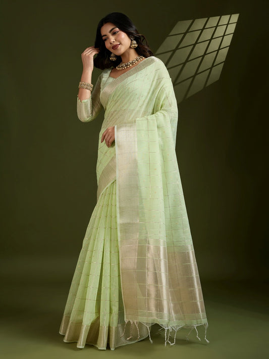 Designer saris are made of the most luxurious materials, both traditional and modern. These are often painstakingly hand-woven with intricate designs and embellishments.