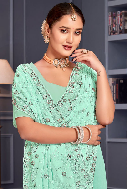 Designer saris are made of the most luxurious materials, both traditional and modern. These are often painstakingly hand-woven with intricate designs and embellishments.