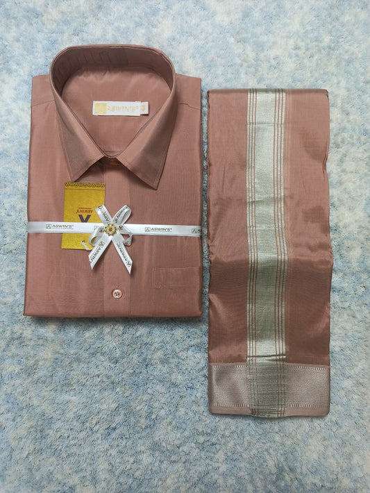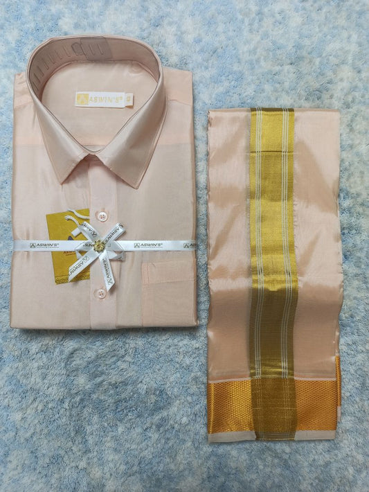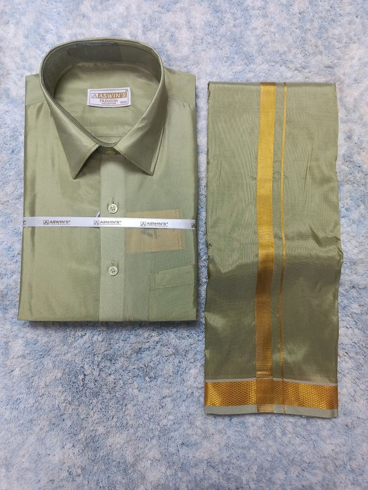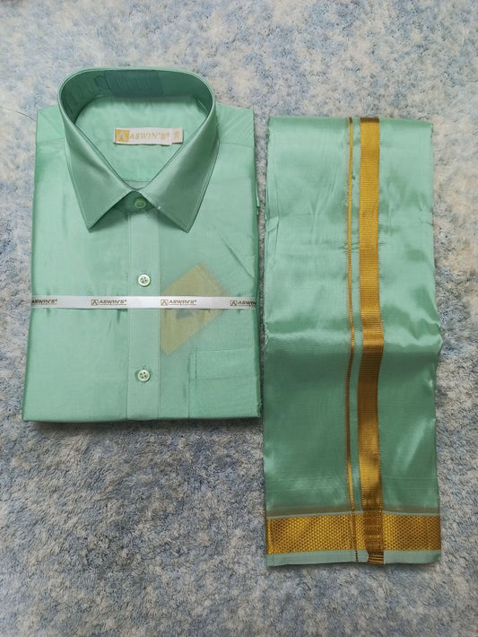 Art Silk Dothi Set Shirt,Dothi,Kerchief &Belt- 3 In 1 ( Small Border)