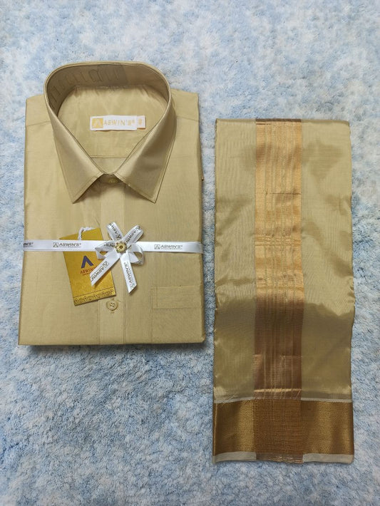 Tissue Shirt And Tissue Dhoti ( Half Sleeve )
