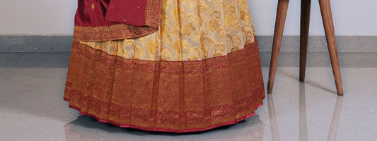 Buy latest lehenga sarees, wedding lehenga choli ,and bridal lehenga cholis with varieties of designs and collection at the online store of Sudarshan Silk. Indian fashion is full of many gorgeous types of textiles, techniques and designs. There are many different types of garments worn across the country in different regions Many of which have broken out of their traditional demographics and become popular with modern women as well as people from other countries. Among these is the glorious Ghagra choli. One of the most ancient garments from India, the Ghagra choli is renowned for its elegance, beauty and traditional look. A Ghagra choli essentially consists of three pieces. The upper wear garment is called the ‘choli’. It is a well-fitted blouse that varies in length depending on the look of the over-all garment. The Ghagra is the long skirt that usually reaches all the way till the floor. It can be of different types of fits, from a straight cut, circular cut or a-line cut to a mermaid cut. The outfit is completed with a flowing scarf called the dupatta.