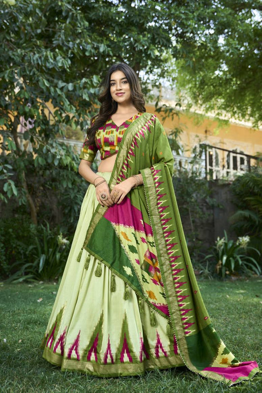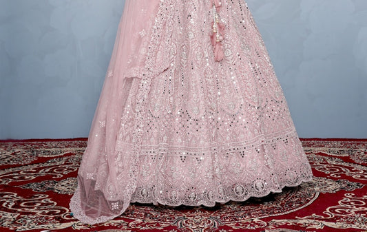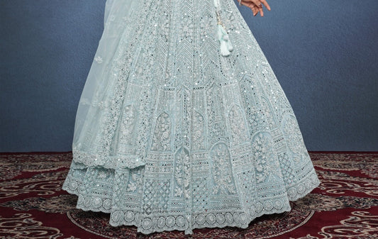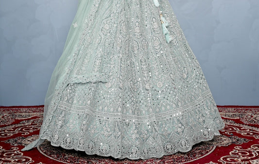 Buy latest lehenga sarees, wedding lehenga choli ,and bridal lehenga cholis with varieties of designs and collection at the online store of Sudarshan Silk. Indian fashion is full of many gorgeous types of textiles, techniques and designs. There are many different types of garments worn across the country in different regions Many of which have broken out of their traditional demographics and become popular with modern women as well as people from other countries. Among these is the glorious Ghagra choli. One of the most ancient garments from India, the Ghagra choli is renowned for its elegance, beauty and traditional look. A Ghagra choli essentially consists of three pieces. The upper wear garment is called the ‘choli’. It is a well-fitted blouse that varies in length depending on the look of the over-all garment. The Ghagra is the long skirt that usually reaches all the way till the floor. It can be of different types of fits, from a straight cut, circular cut or a-line cut to a mermaid cut. The outfit is completed with a flowing scarf called the dupatta.