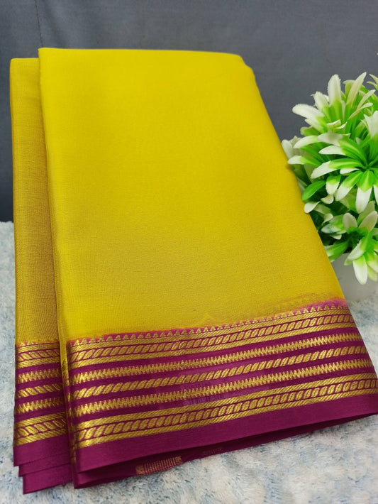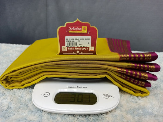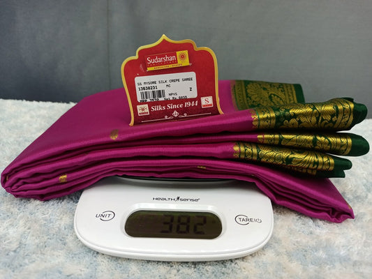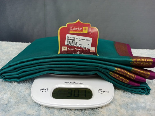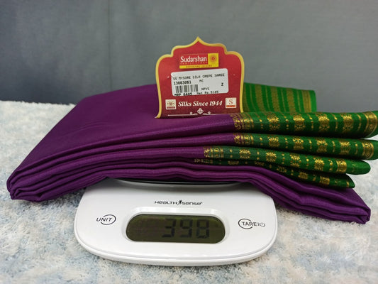 The Mysore silk crepe is woven from hardspun silk yarn and is one of the most widely used form of silk across India. The Mysore silk comes from the city of Mysore in Karnataka, India The earliest mentions of the silken crepe fabric can be traced back to 1785 AD. This was the time when the first silk cocoons where imported to Mysore. It was Tipu Sultan, a great Indian warrior, who in the pursuit of making Mysore a great land, first imported cocoons of silk from China. During Tipu Sultan’s regime, sericulture was formally introduced to Mysore. Thereafter, sericulture became one of the most important industries of Karnataka. Since Mysore silk crepe belongs to an era of ancient India, it traditionally is made of pure silk with gold Zari. Inspired by the natural ambiance and customs of the time, the Mysore silk crepe saree got a face that preserves the heritage of India. Buy exclusive Mysore crape silk sarees at Sudarshan Silk which has proven to be a shopper's delight in wedding sarees, silk sarees for all generations of families. MYSORE SILK ALSO KNOWN AS CRAPE SILK SAREES, WORLDWIDE SHIPPING IN WHOLE SALE PRICES. , India United States United Kingdom Finland Sri Lanka Malaysia Canada Australia Bangladesh France Singapore Switzerland Fiji Bahrain and all