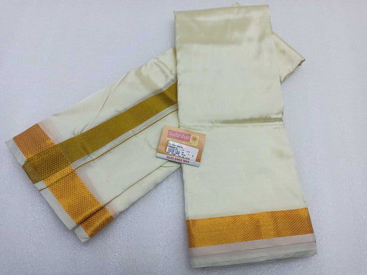 Raw silk Ready Dhothi With shalya 1 Inch Border Gold Jari