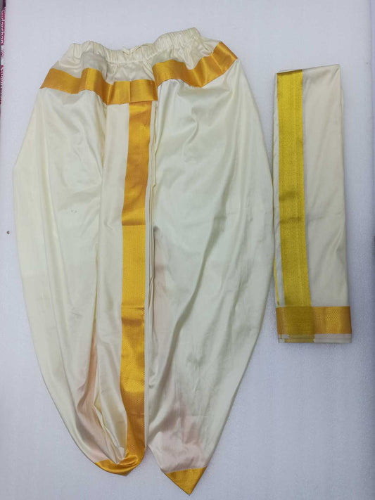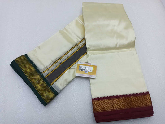Raw silk Dhothi 8 yards dothi X 4yards shalya 1 cm Border, Gold Jari