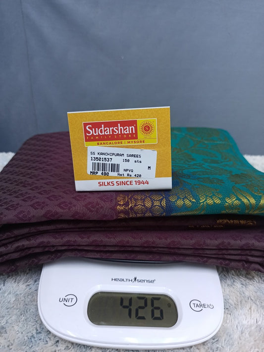 Raw silk Dhothi 8 yards dothi X 4yards shalya, Ganga Jamuna 1 cm Border .