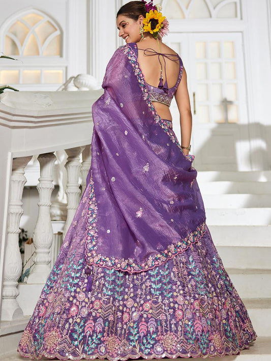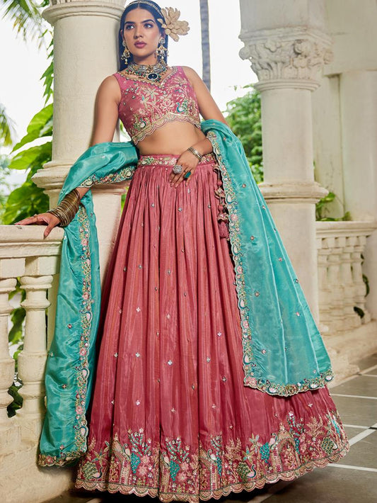 Buy latest lehenga sarees, wedding lehenga choli ,and bridal lehenga cholis with varieties of designs and collection at the online store of Sudarshan Silk. Indian fashion is full of many gorgeous types of textiles, techniques and designs. There are many different types of garments worn across the country in different regions Many of which have broken out of their traditional demographics and become popular with modern women as well as people from other countries. Among these is the glorious Ghagra choli. One of the most ancient garments from India, the Ghagra choli is renowned for its elegance, beauty and traditional look. A Ghagra choli essentially consists of three pieces. The upper wear garment is called the ‘choli’. It is a well-fitted blouse that varies in length depending on the look of the over-all garment. The Ghagra is the long skirt that usually reaches all the way till the floor. It can be of different types of fits, from a straight cut, circular cut or a-line cut to a mermaid cut. The outfit is completed with a flowing scarf called the dupatta.