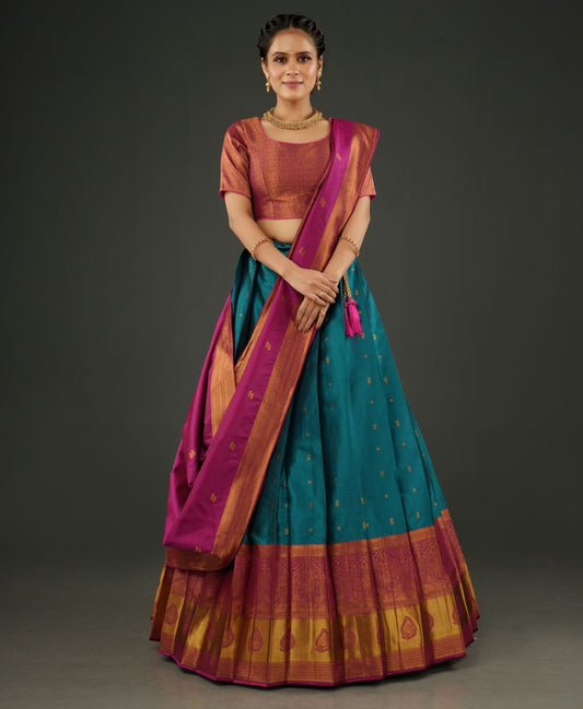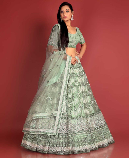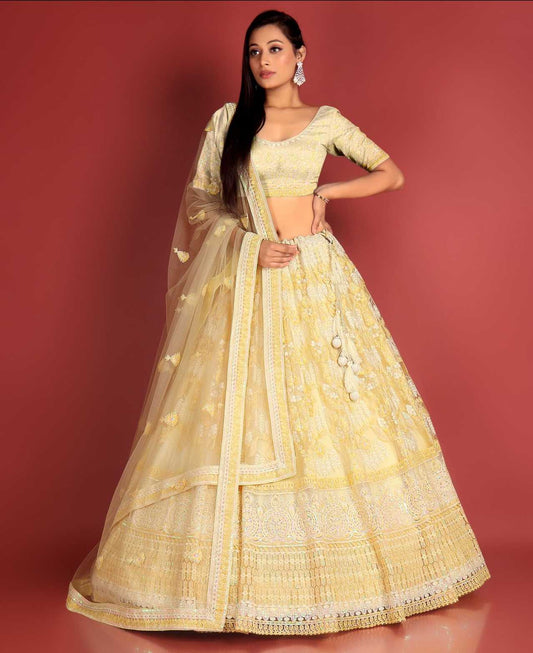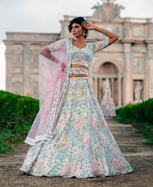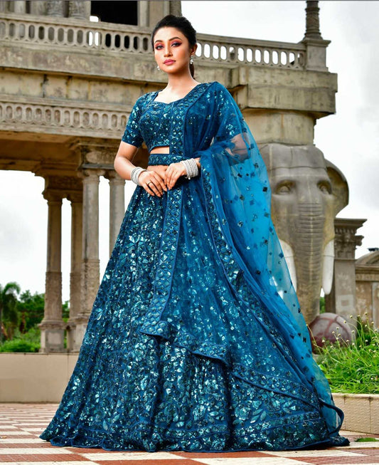 Buy latest lehenga sarees, wedding lehenga choli ,and bridal lehenga cholis with varieties of designs and collection at the online store of Sudarshan Silk. Indian fashion is full of many gorgeous types of textiles, techniques and designs. There are many different types of garments worn across the country in different regions Many of which have broken out of their traditional demographics and become popular with modern women as well as people from other countries. Among these is the glorious Ghagra choli. One of the most ancient garments from India, the Ghagra choli is renowned for its elegance, beauty and traditional look. A Ghagra choli essentially consists of three pieces. The upper wear garment is called the ‘choli’. It is a well-fitted blouse that varies in length depending on the look of the over-all garment. The Ghagra is the long skirt that usually reaches all the way till the floor. It can be of different types of fits, from a straight cut, circular cut or a-line cut to a mermaid cut. The outfit is completed with a flowing scarf called the dupatta.