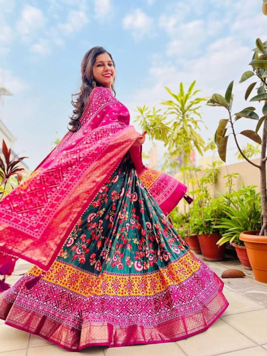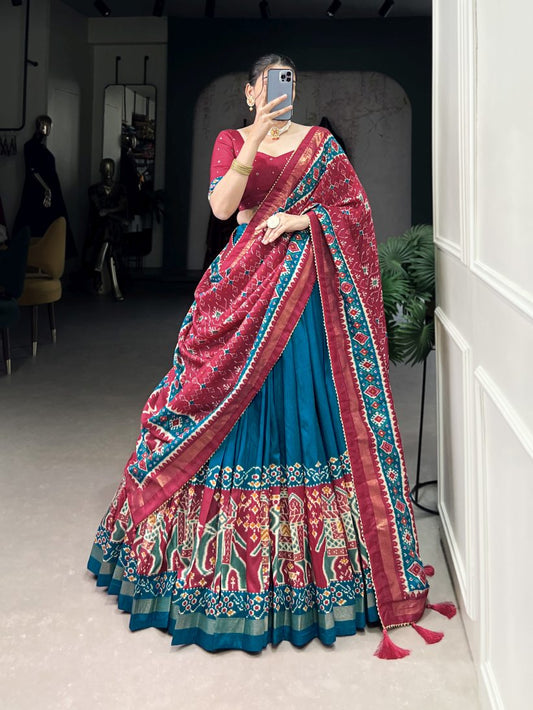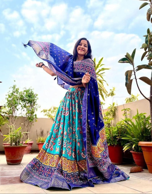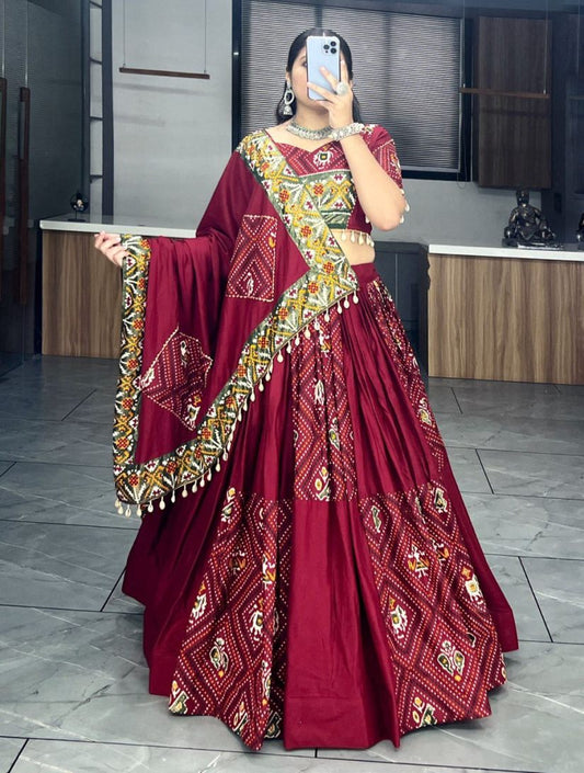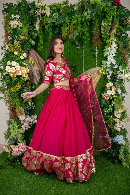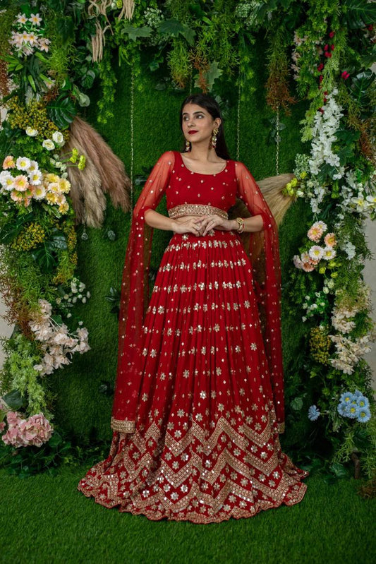 Buy latest lehenga sarees, wedding lehenga choli ,and bridal lehenga cholis with varieties of designs and collection at the online store of Sudarshan Silk. Indian fashion is full of many gorgeous types of textiles, techniques and designs. There are many different types of garments worn across the country in different regions Many of which have broken out of their traditional demographics and become popular with modern women as well as people from other countries. Among these is the glorious Ghagra choli. One of the most ancient garments from India, the Ghagra choli is renowned for its elegance, beauty and traditional look. A Ghagra choli essentially consists of three pieces. The upper wear garment is called the ‘choli’. It is a well-fitted blouse that varies in length depending on the look of the over-all garment. The Ghagra is the long skirt that usually reaches all the way till the floor. It can be of different types of fits, from a straight cut, circular cut or a-line cut to a mermaid cut. The outfit is completed with a flowing scarf called the dupatta.
