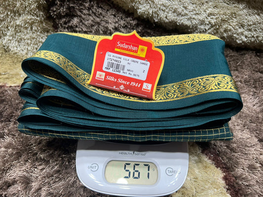 The Mysore silk crepe is woven from hardspun silk yarn and is one of the most widely used form of silk across India. The Mysore silk comes from the city of Mysore in Karnataka, India The earliest mentions of the silken crepe fabric can be traced back to 1785 AD. This was the time when the first silk cocoons where imported to Mysore. It was Tipu Sultan, a great Indian warrior, who in the pursuit of making Mysore a great land, first imported cocoons of silk from China. During Tipu Sultan’s regime, sericulture was formally introduced to Mysore. Thereafter, sericulture became one of the most important industries of Karnataka. Since Mysore silk crepe belongs to an era of ancient India, it traditionally is made of pure silk with gold Zari. Inspired by the natural ambiance and customs of the time, the Mysore silk crepe saree got a face that preserves the heritage of India. Buy exclusive Mysore crape silk sarees at Sudarshan Silk which has proven to be a shopper's delight in wedding sarees, silk sarees for all generations of families. MYSORE SILK ALSO KNOWN AS CRAPE SILK SAREES, WORLDWIDE SHIPPING IN WHOLE SALE PRICES. , India United States United Kingdom Finland Sri Lanka Malaysia Canada Australia Bangladesh France Singapore Switzerland Fiji Bahrain and all