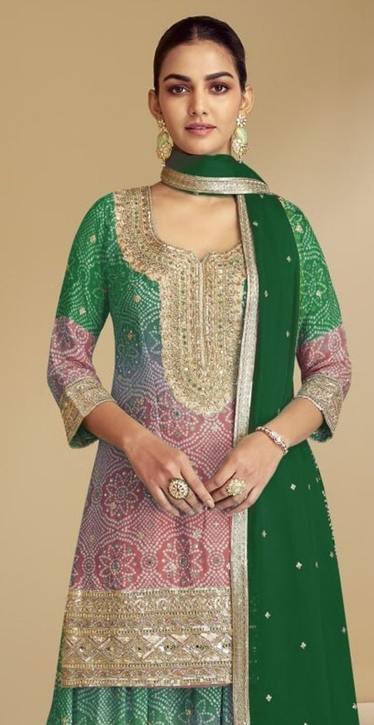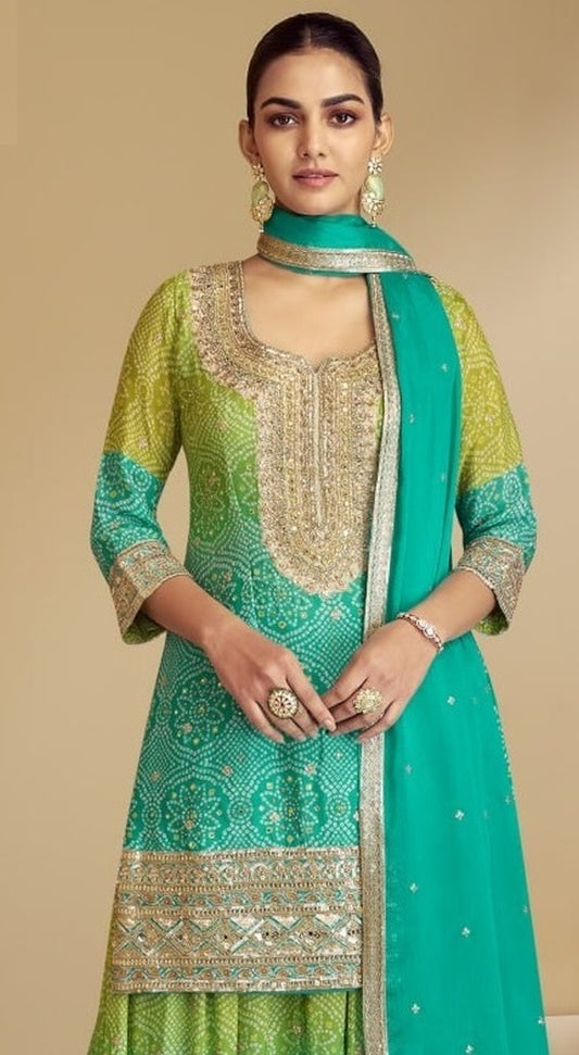 Latest Semi Stitched Sharara Suit Top Bottom And Duppatta