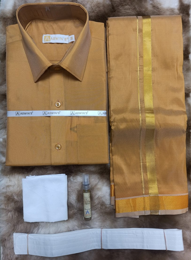 Art Silk Dothi Set Shirt,Dothi,Kerchief &Belt- 3 In 1 ( Small Border)