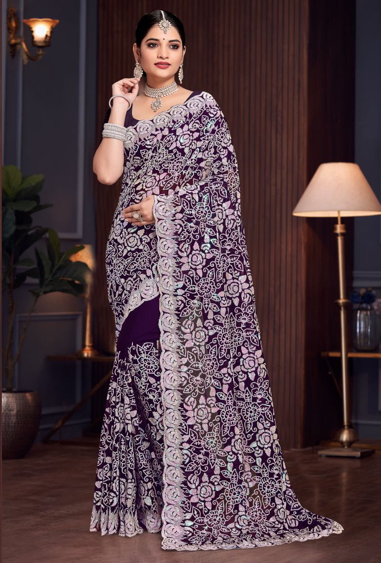 Work :Heavy Resham And Sequins Embroidery Work With Heavy Work Blouse.