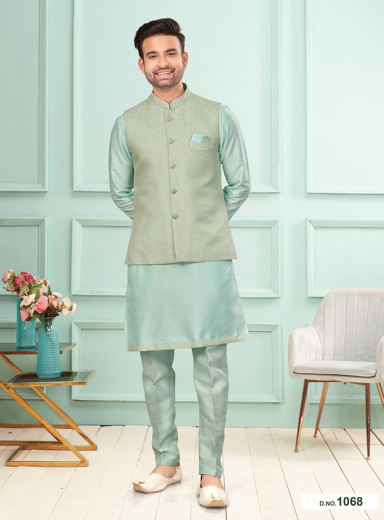 - Style: Kurta Pyjama with Nehru jacket Jacket.