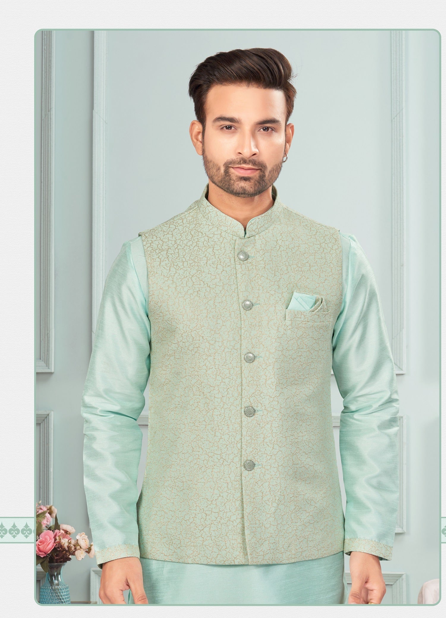 - Material: Banarsi Silk kurta pajama with cotton blend nehru jacket