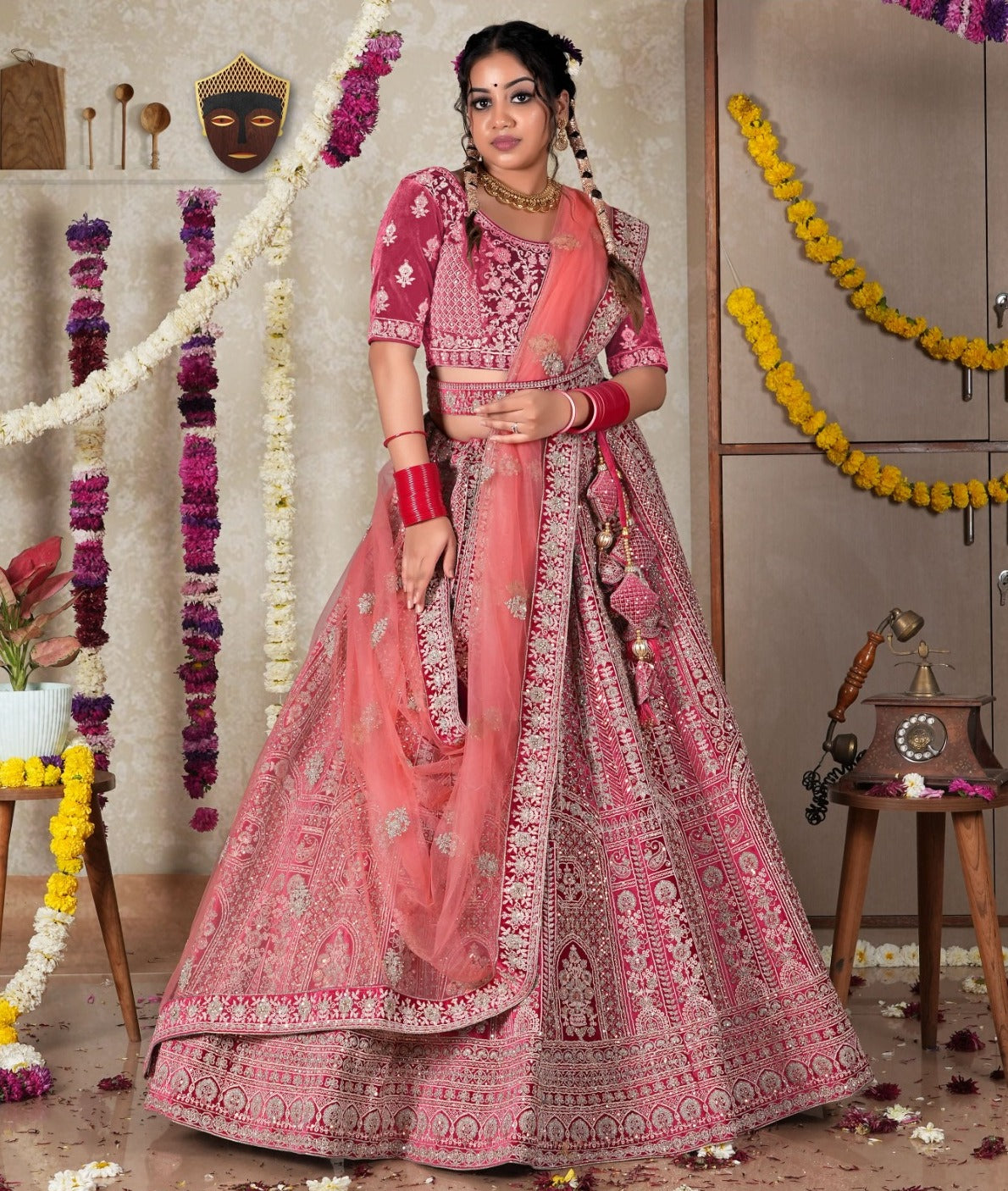 New Semi Stitiched Velvet Bridal Lehenga Choli