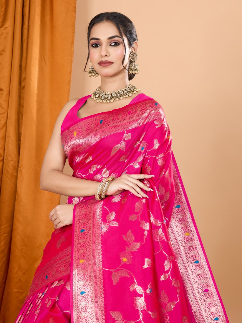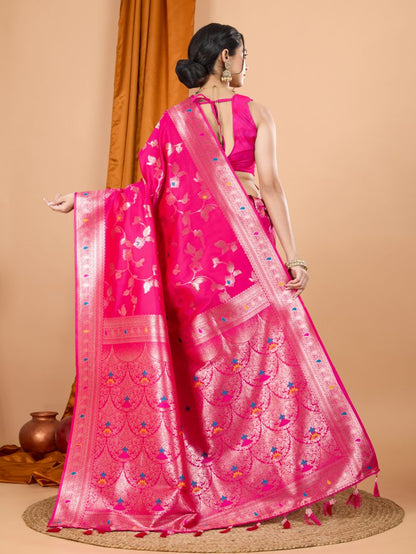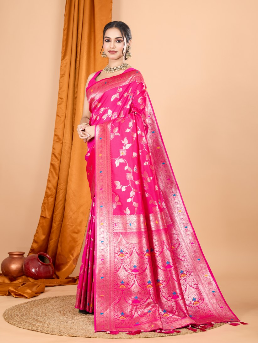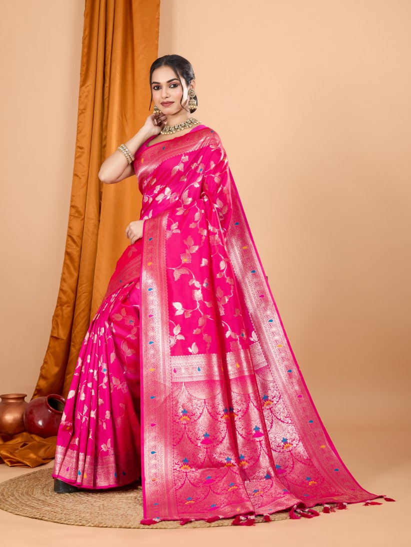 - Work - Rich pallu with Meenakari weawing border & Tassels attached at Pallu End.