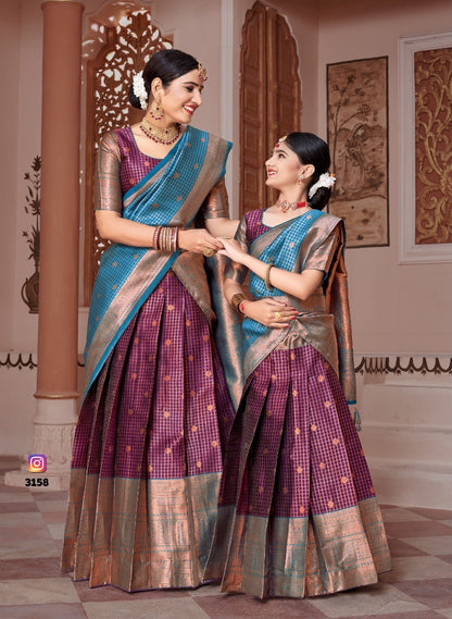 ReadyMade Art Silk Lehenga With Silk Duppatta ( Mother and Daughter )